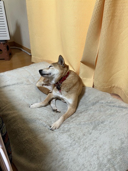 アラームが鳴りまして 起き出しましたが、二人とも お散歩行く気合いが入らなかったようで、スローな朝でございました😅