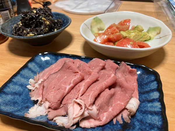 夜御飯の時間となりまして、昨晩は スーパーのローストビーフがメインで乾杯♪(*^^)o∀*∀o(^^*)♪