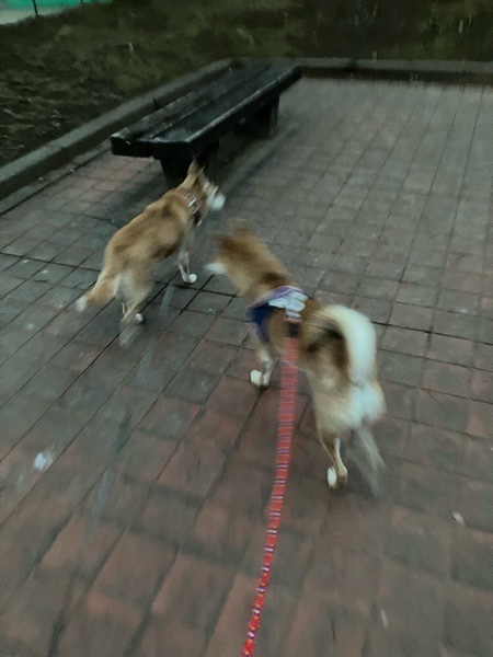 トイレが済みますと ノーダッシュとなりますので、リリ君もヒバ子さんの元へ寄って行きまして、一緒にクンクンでございました☺️