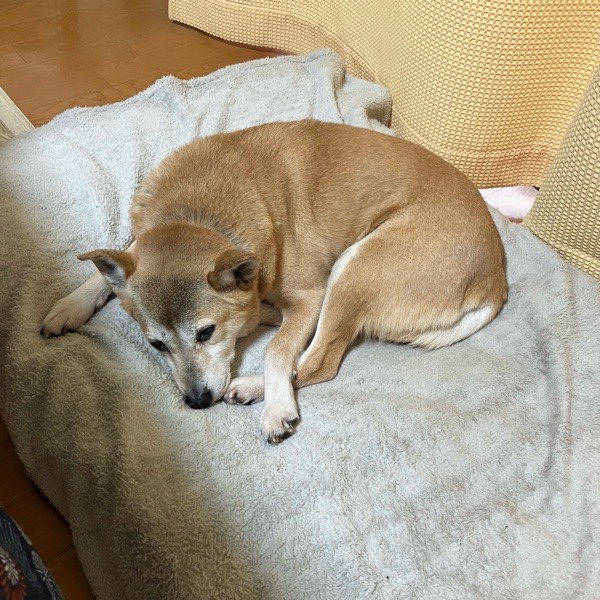 リリ君も眠くなりまして、顔のパーツが真ん中に寄っちゃいまして🤣