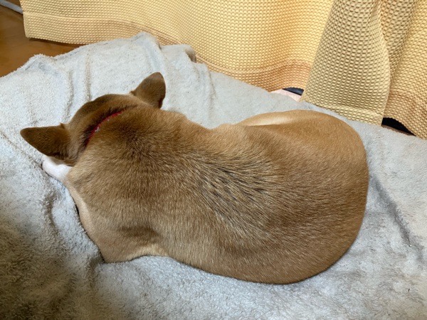 夕方の お散歩しまして、御飯食べますと またまた睡魔が…のヒバ子さん(@ ̄ρ ̄@)