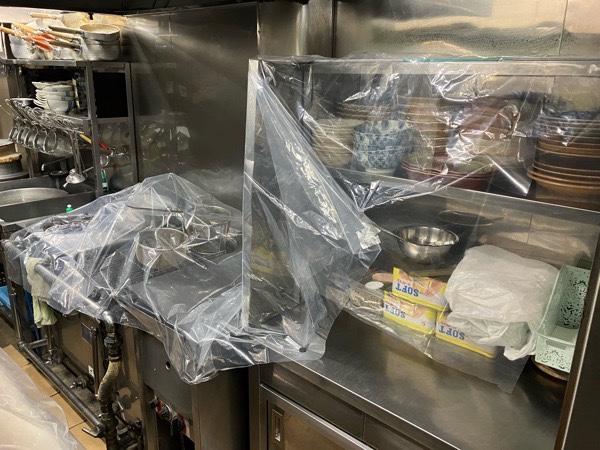 お店に戻ってきまして、1番大きなビニール袋の両サイドを切りまして、大きく広げましてー!