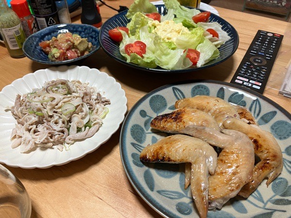 夜御飯は、塩水手羽先焼きで乾杯♪(*^^)o∀*∀o(^^*)♪
