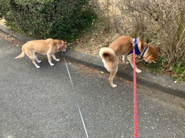 朝の お散歩は、シンクロクンクン(=´∀`)人(´∀`=)