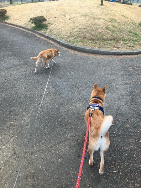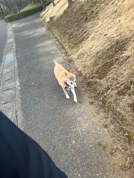 ヒバ子さん、おトイレ済みまして スピード感無くなりまして、テクテクと🐕
