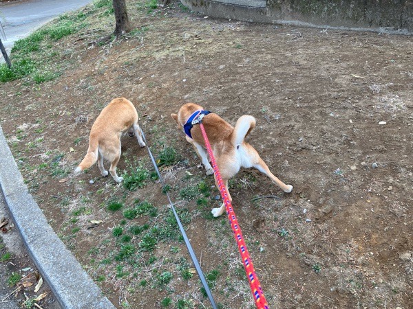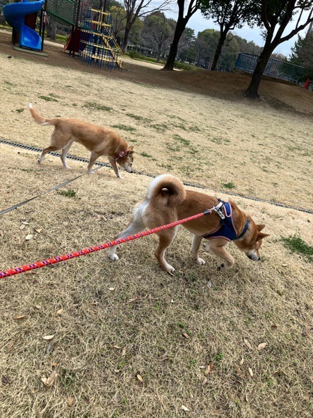 リードの長さが違いますので、リリ君がヒバ子さんの元へ行きたい行きたい!となりますと、踏ん張る感じに😅