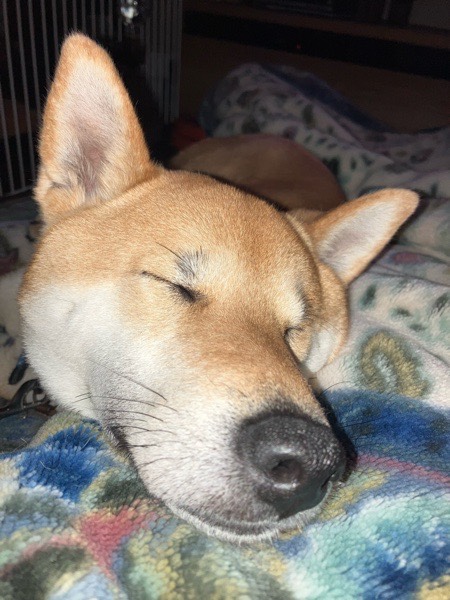 記念日の夜、瞬ぴぃを枕に爆睡してくれました(⌒▽⌒)
