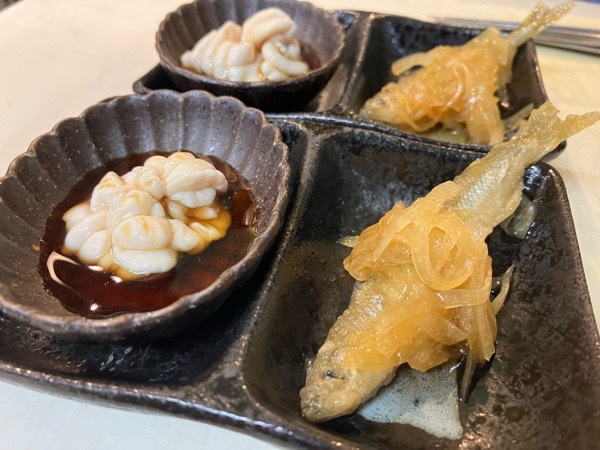 白子ポン酢と わかさぎの南蛮漬けが お通し。