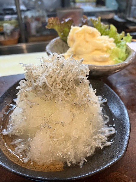 お通しは、こだわり豆腐のヤッコと鰤の塩ユッケ。