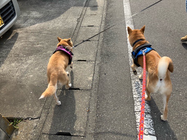 二人とも 新しいハーネスに慣れてきた感じで🤗