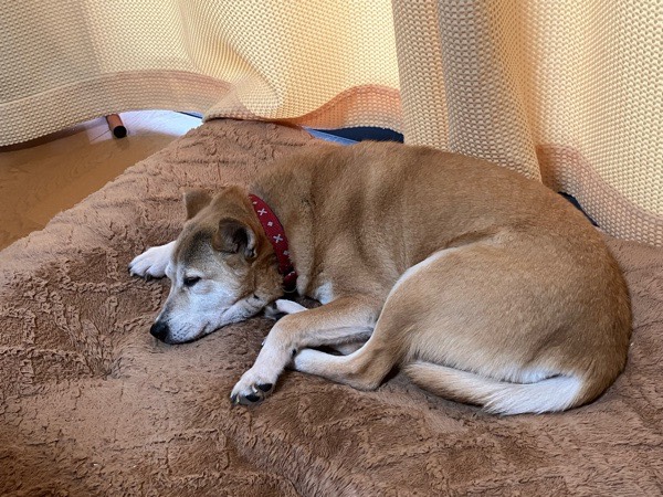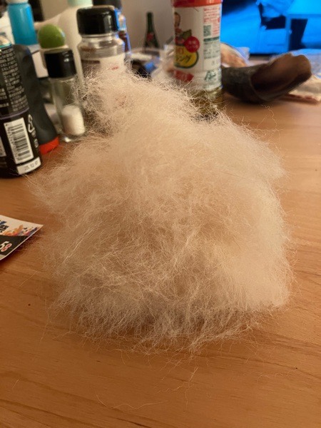 後ろ脚のモモの部分を少しブラッシングしただけで、モッソリでございます😎
