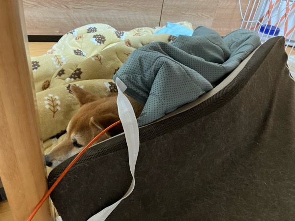 帰宅しますと、殿様お坊ちゃまが、瞬ぴぃの お布団をグシャグシャにしまして、自分のベッドを作り、満足そうに寝ておりました😂