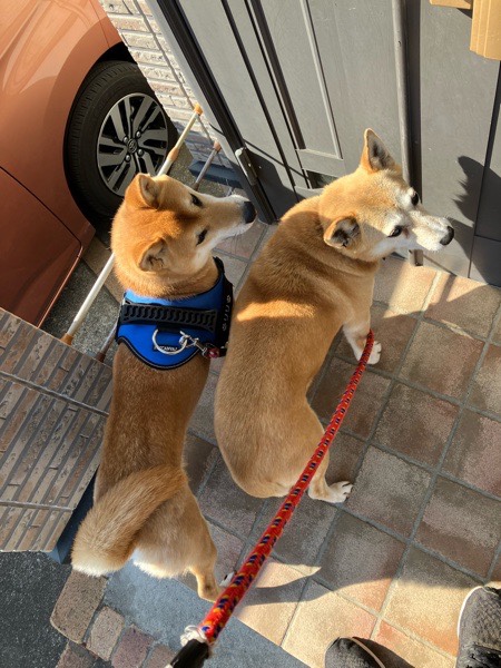 お散歩から帰って来ますと、どっちが先に入るかの競争な感じで😆