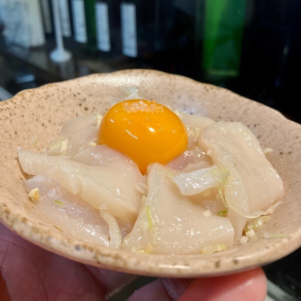 帆立の塩ユッケ。