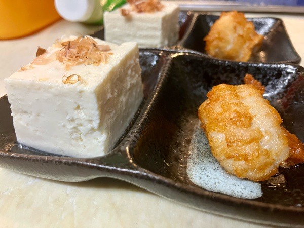 こだわり豆腐のヤッコと鱧の唐揚げが お通し。