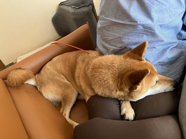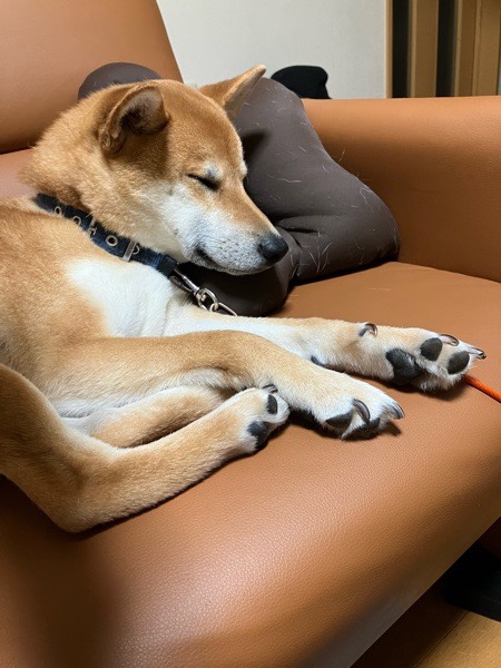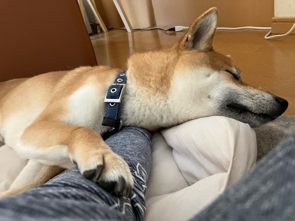 奥様と交代となりまして、瞬ぴぃの腕を枕に爆睡💤