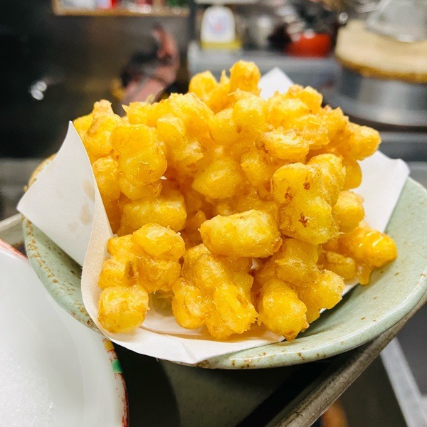 地元産の甘い玉蜀黍が入りましたので、シレッとオススメメニューに かき揚げを仲間入りさせましたら、全卓でオーダー頂きました😆