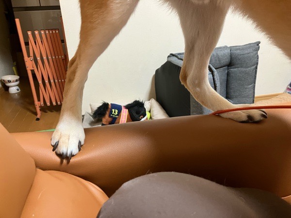 リリ君は、蹄の匂いを嗅ぎながら お馬さんを見ながら夢の中💤