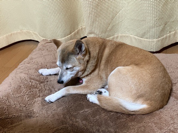 ヒバ子さん、寝る前のルーティン⁈ で、睡魔と戦っておりました😴