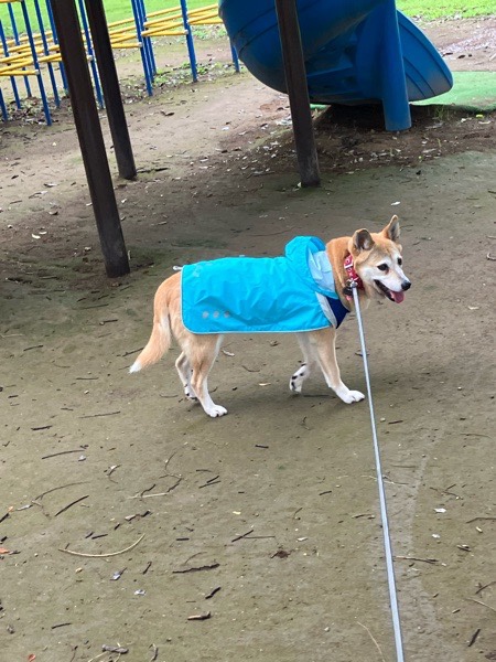 帰り道、ヒバ子さんがスベリ台が気になったようで、クンクンタイム😅