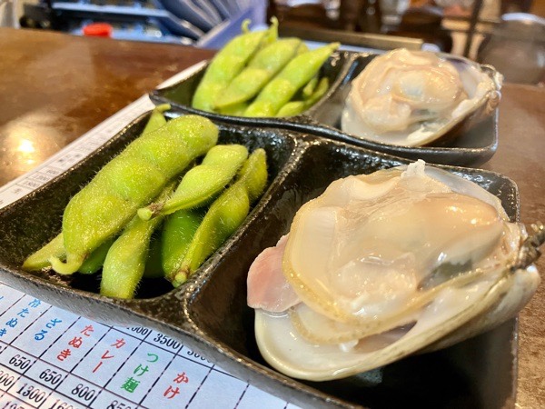 地元枝豆と地蛤の酒蒸しの お通しから(^^)v