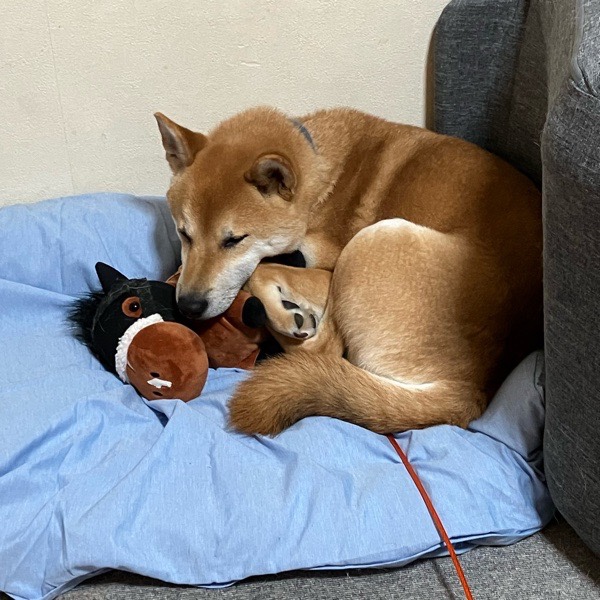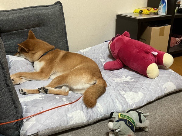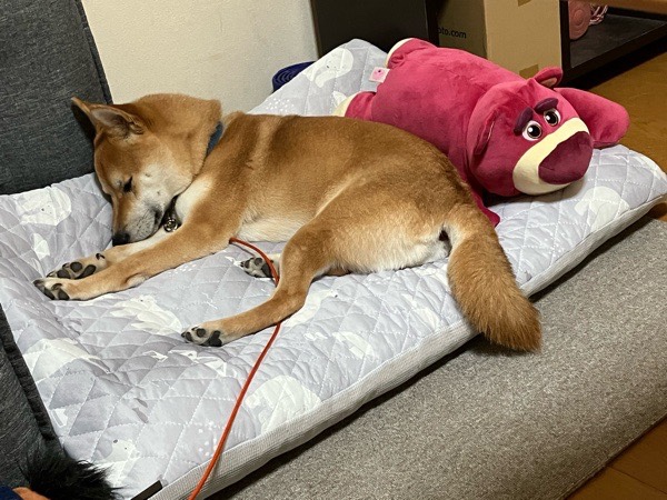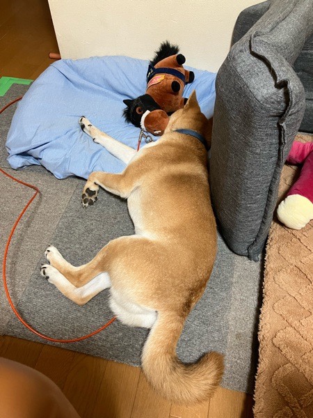朝御飯を食べまして、除湿部屋で お昼寝の お坊ちゃまは お友達と合体しておりました😂