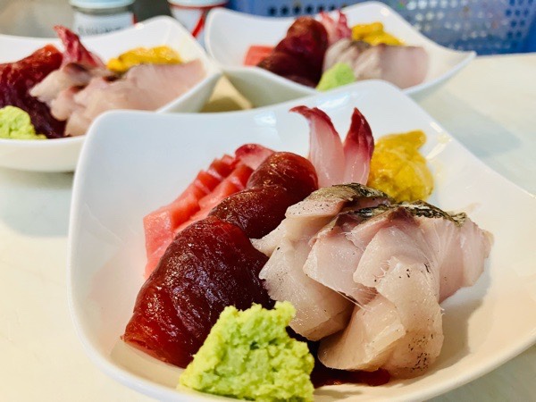 開店しまして、お通しの写真を撮り忘れましての お刺身盛り。