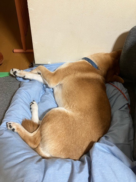 お顔が めり込んでる感じでしたが、本人は満足そうでございましたので、そのまま そーっとしておきました🤣