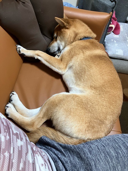 あっという間に 1日が終わりまして、二人は同じ体勢で夢の中でございました😪