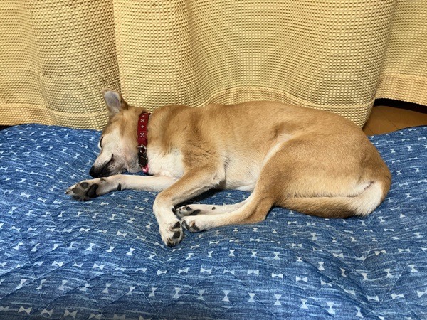リリっちょに また 布団が増えたようで、壁として使用しておりました 座椅子を自分で器用に向きを変えまして、お布団として使い出したとの事です(≧∀≦)