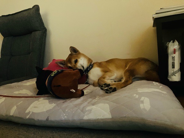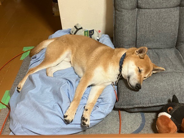 帰宅しまして、シッコだけしまして、御飯食べましての充電タイム💤