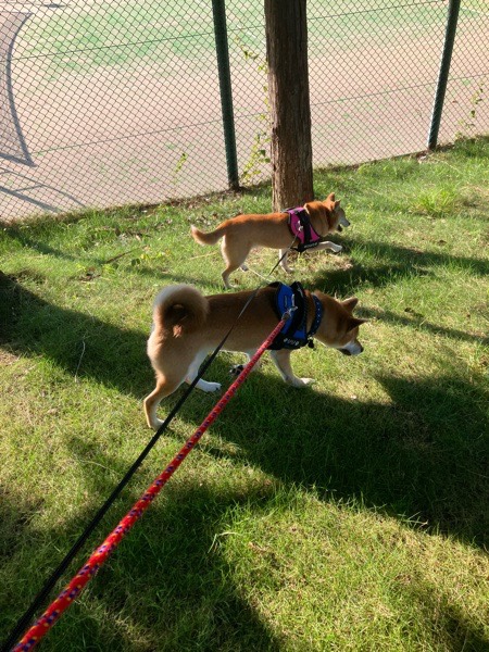 シニアなヒバ子さんと、フィラリア陽性のリリっちょの心臓の事を考えまして、夏場は ショートな感じの お散歩タイムです🐕