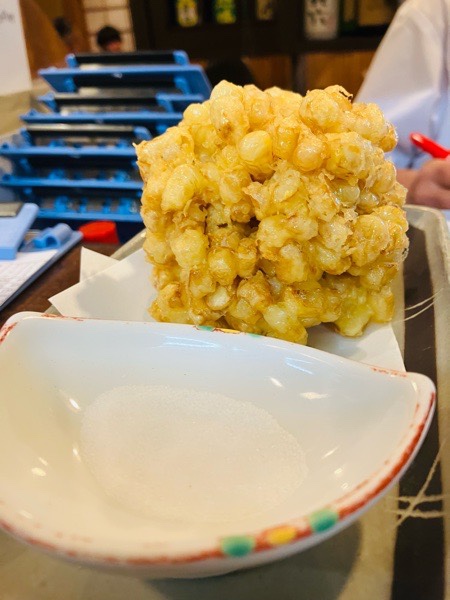 とうもろこしの かき揚げ。