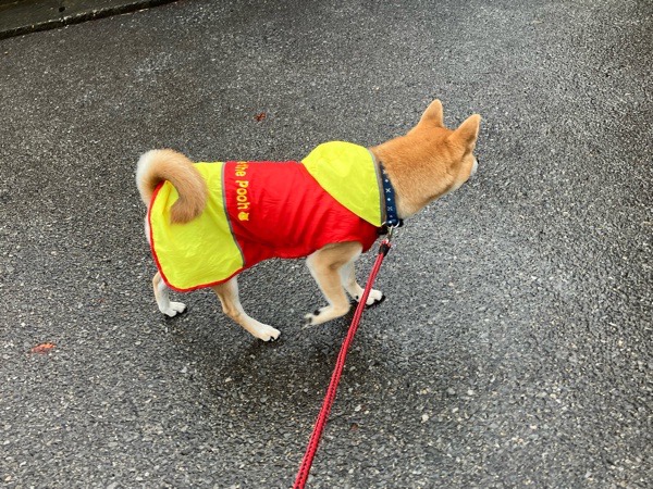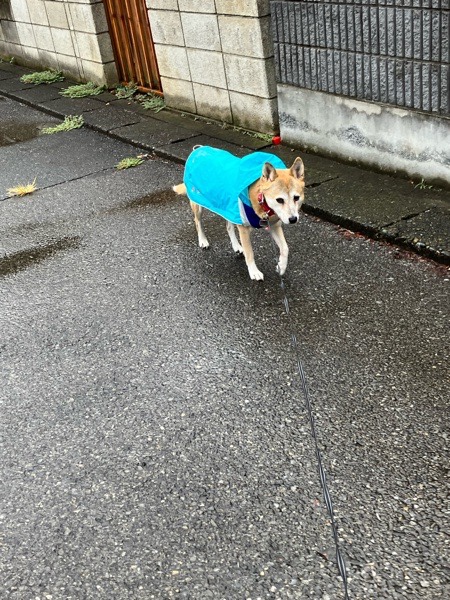 雨はOKだけど、レインコートは嫌々のヒバ子さん😰