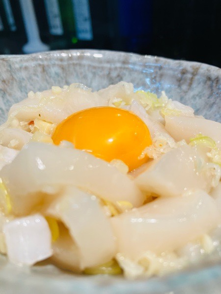 帆立の塩ユッケ。
