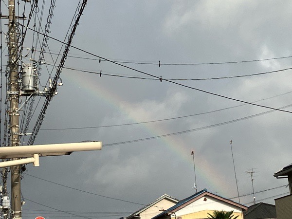 朝、お散歩へ出ますと、良い天気なのに雨が降ってたりしまして、お空を見上げて見ますと 虹が(((o(*゚▽゚*)o)))