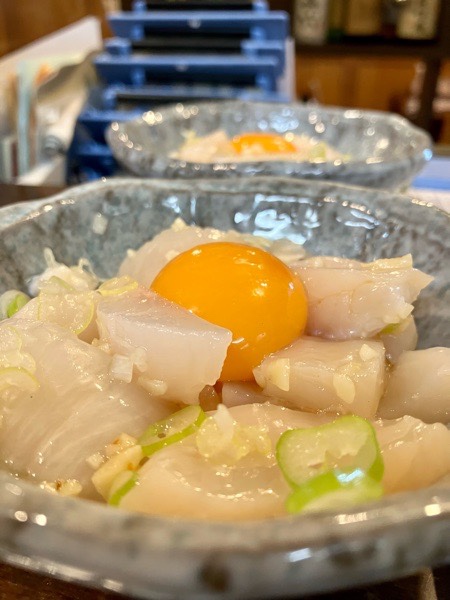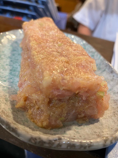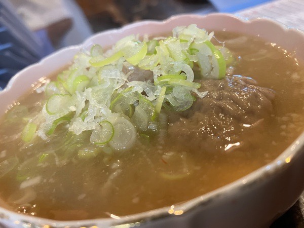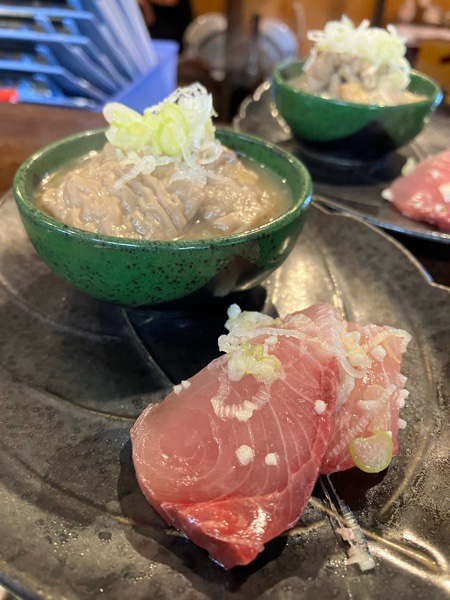お通しからの おかわりオーダー、特製 豚の大トロもつ煮。