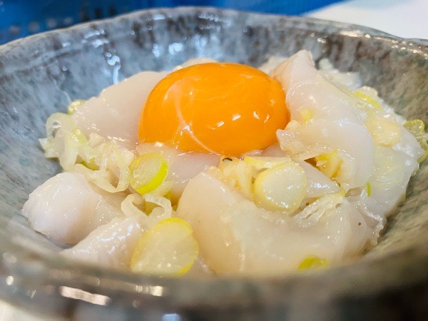 帆立の塩ユッケ。