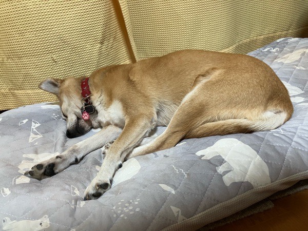 寝相の悪い リリっちょは、自分で お布団動かしまして、新たな場所で寝ておりました😪