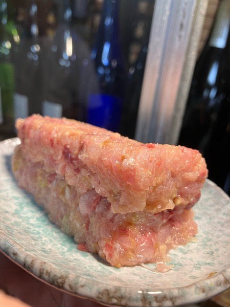 お通しは、鮪の角煮と若鶏胸肉唐揚げ。