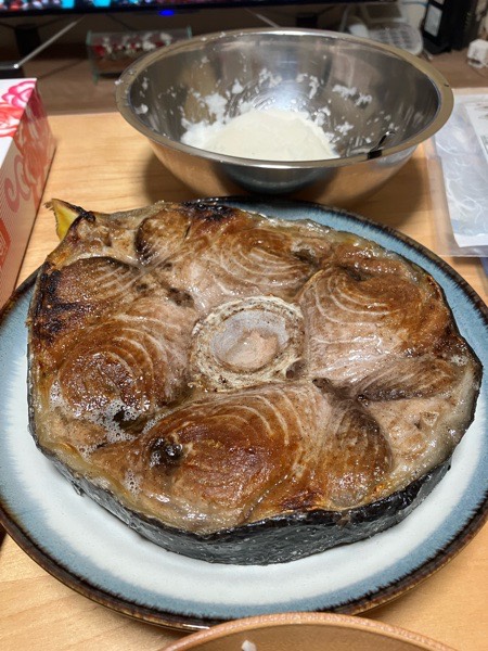 メインディッシュは、卸さんから頂きました 鮪の尾の身焼き🐟