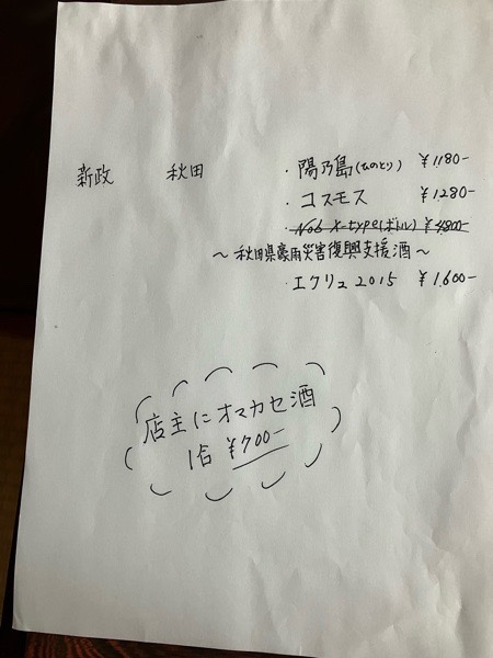 お店の準備へ入りまして、日本酒メニューも書き直し_φ( ̄ー ̄ )