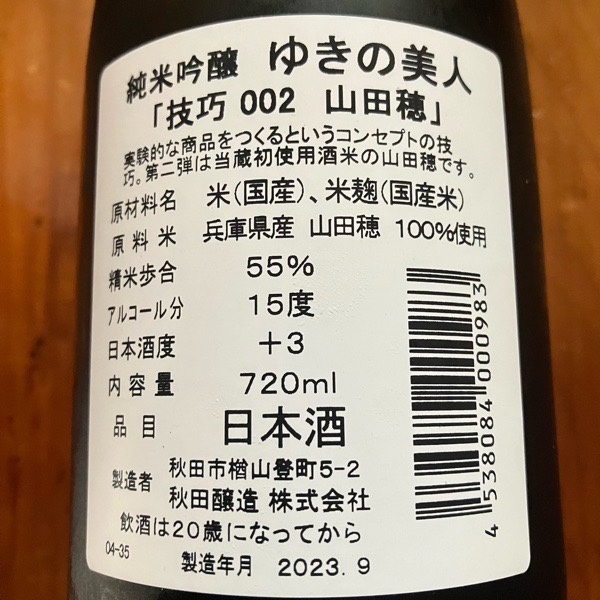 ゆきの美人 純米吟醸 技巧002 山田穂