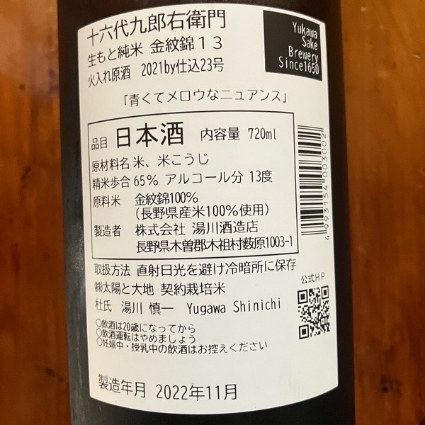 十六代九郎右衛門 生酛 純米 金紋錦13