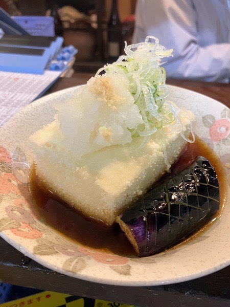 お通しは、自家製鰤の生ハムと河豚の唐揚げ。