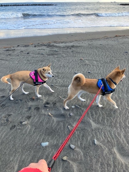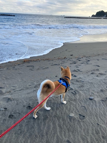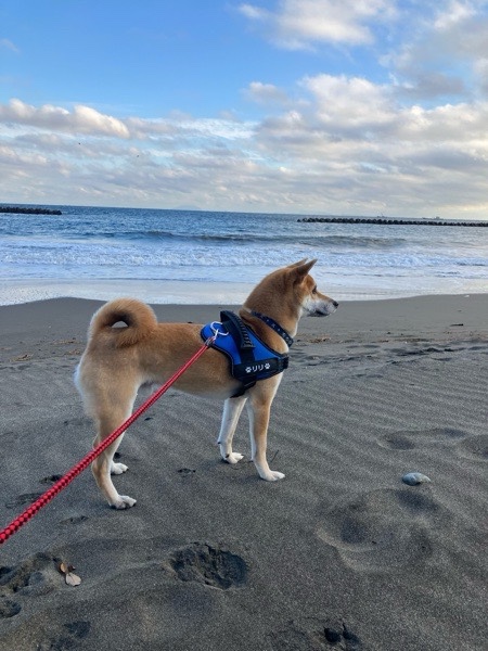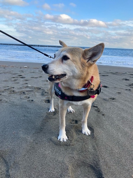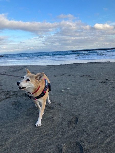 茨城犬のヒバ子さん、音ビビリなのに 海は大丈夫だったりします😊