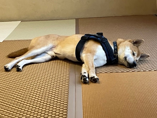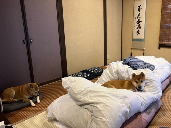 朝も露天なら温泉入れるということで、奥様に先に入ってもらいまして、お布団畳みましたら アザース!とリリっちょが😅