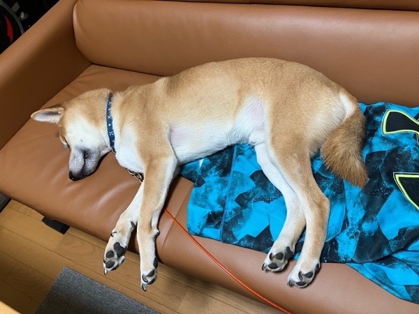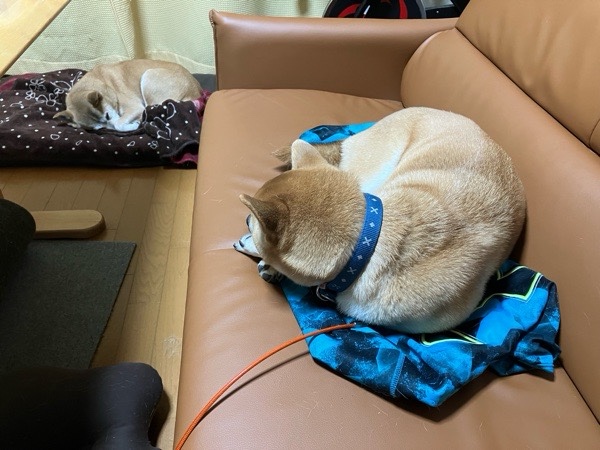 自分の布団で爆睡のヒバ子さんと、瞬ぴぃの上着を敷布団にして寝てました リリっちょ😅
