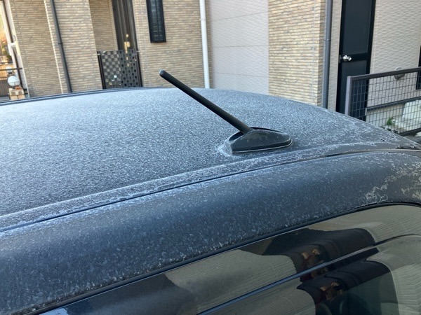 朝、お散歩へ行こうとしましたら…車の屋根が凍ってまして😱