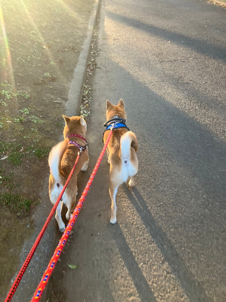 リードの長さが決まっている お二人さんなので お互いに体当たりしながら進んでますが、どちらも怒る事ありませんので、仲良し大作戦が成功している感じです👏